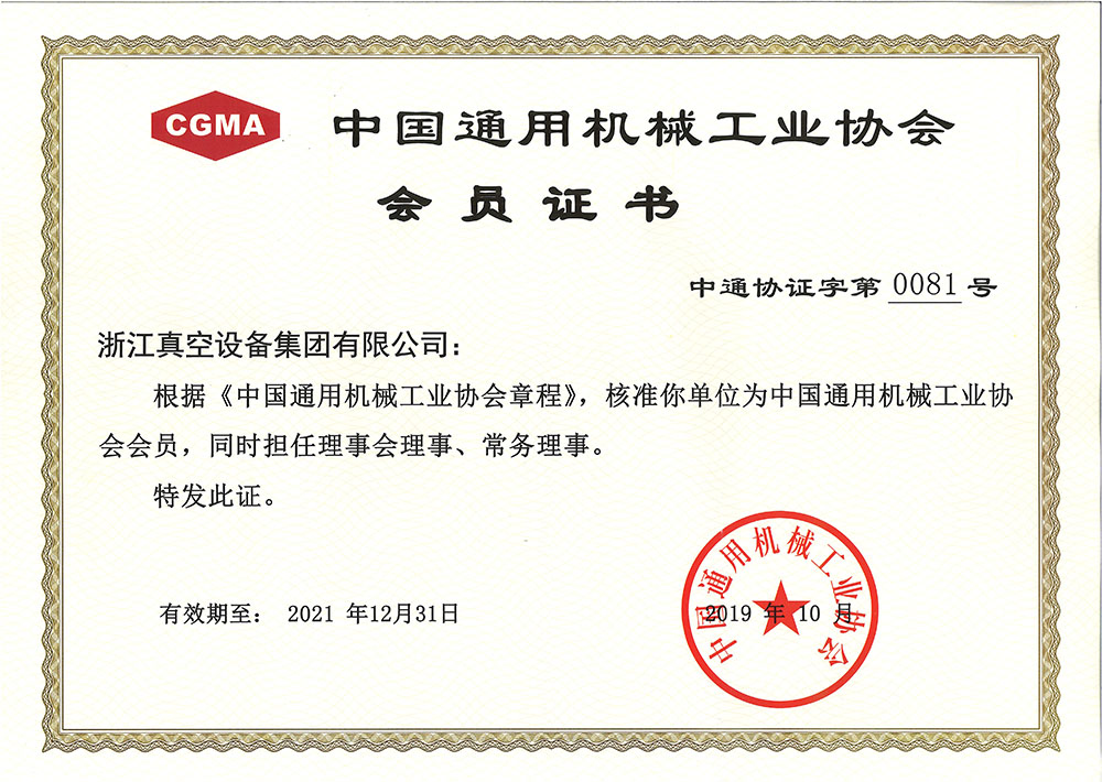 中國通用機械工業協會會員證書